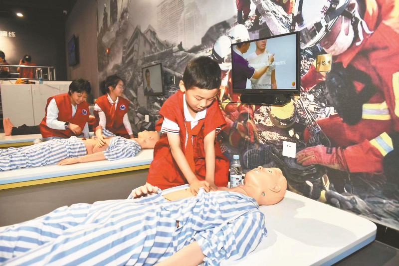 近日,25名新安小记者来到舒城县防震减灾科普馆,学习安全避险等急救常识。 安徽日报报业集团全媒体记者 马 杨 摄