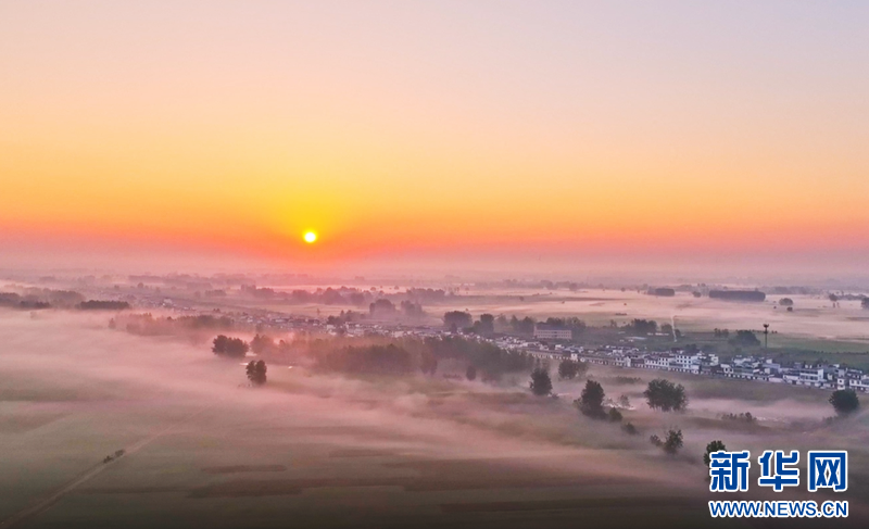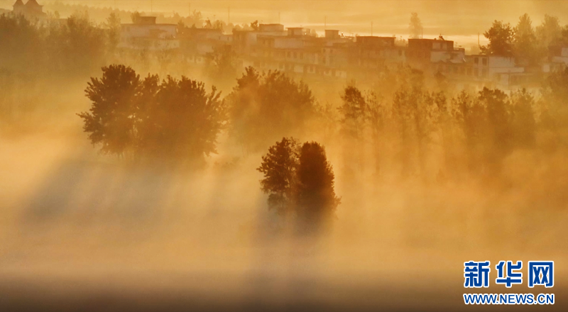 安徽阜阳:晨雾缭绕 乡村如画-新华网