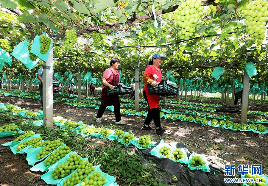 近日,在安徽省淮北市杜集区南山村葡萄种植基地,村民正忙着采摘葡萄。