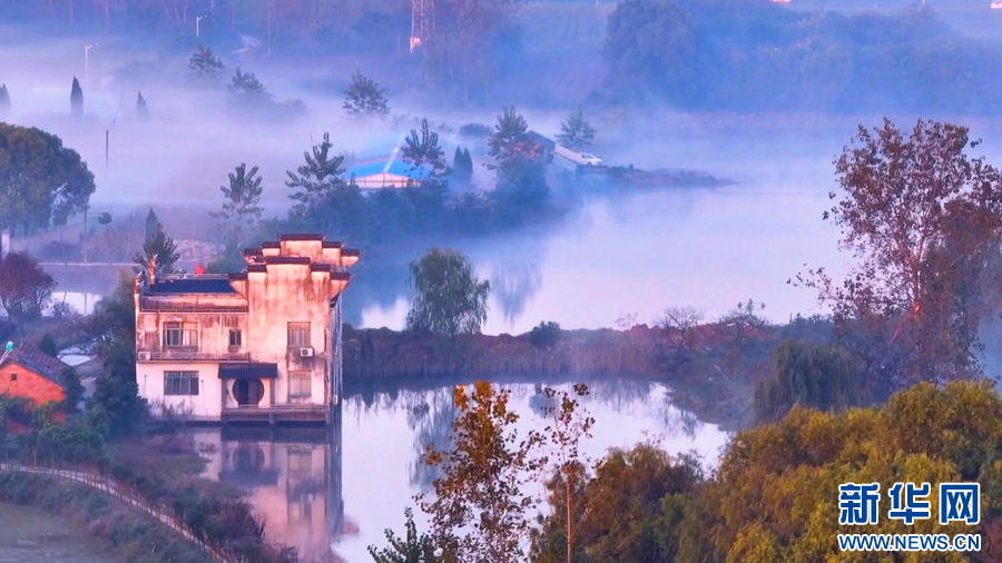 秋日的安徽省铜陵市义安区,晨雾“勾画”出乡村的梦幻之境,田野、河道和村庄若隐若现、相映成趣,令人陶醉。
