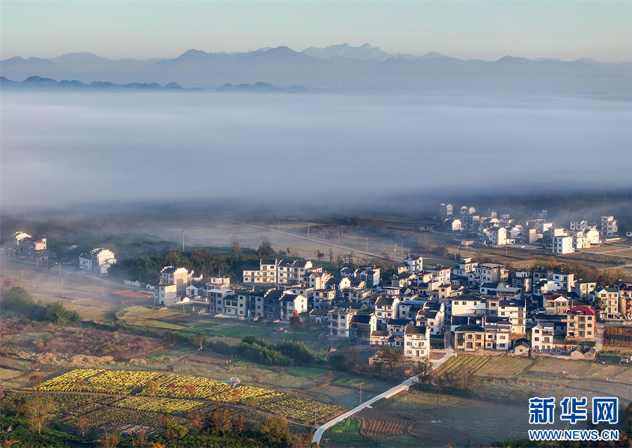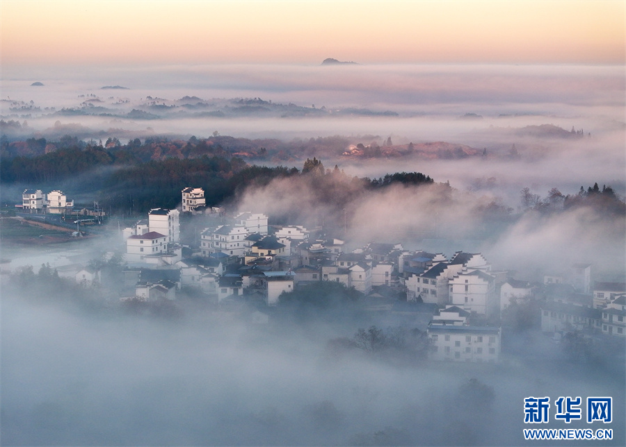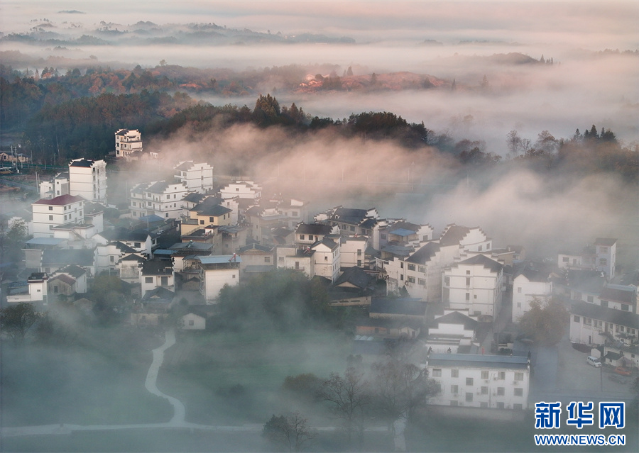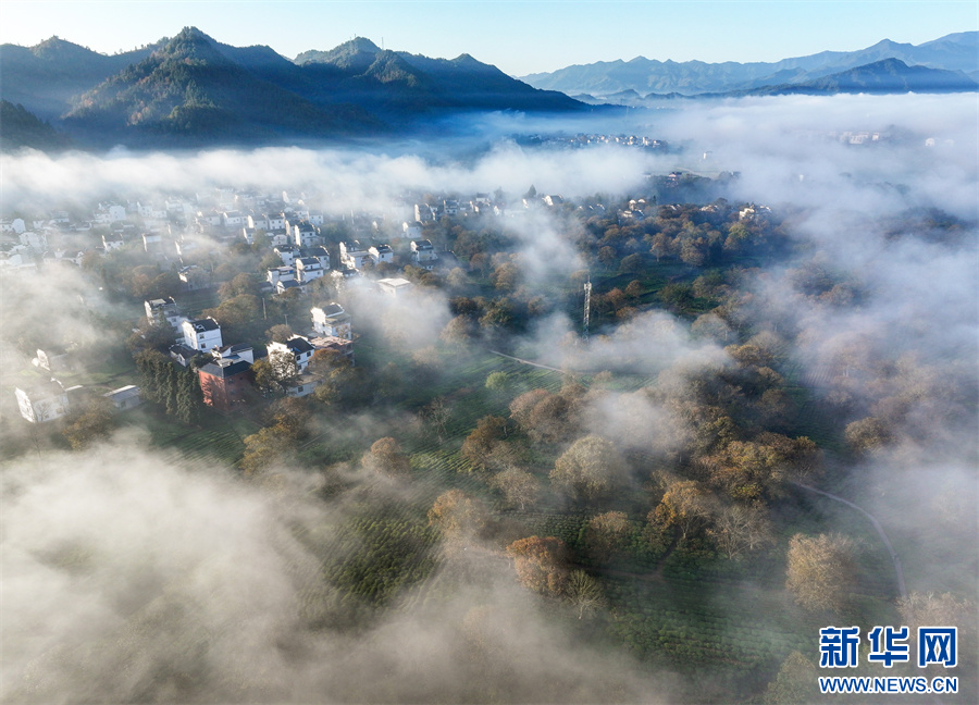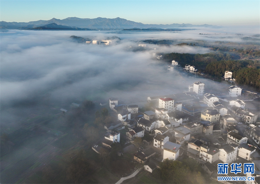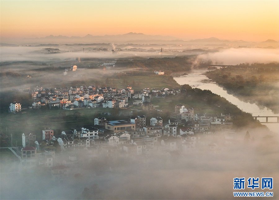 当日清晨,安徽省黄山市休宁县商山镇溪州村晨雾飘渺,鳞次栉比的徽派建筑掩映其间,若隐若现,如梦似幻。新华网发(施亚磊 摄)