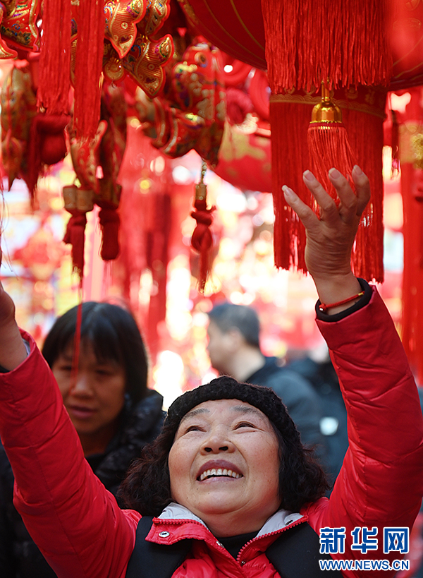 1月13日,市民在合肥市城隍庙小商品市场选购新春挂件。