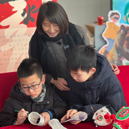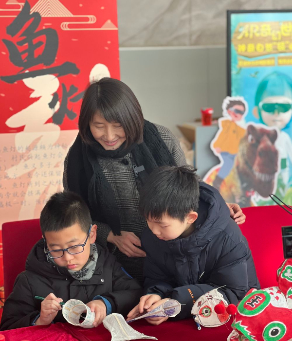 胡淑华在研学活动现场教孩子们制作鱼灯。新华社记者喻珮 摄