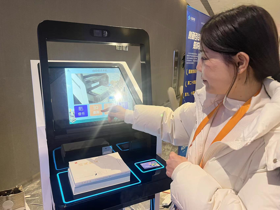 东超科技的“可交互空中成像技术”被应用于非接触可操作自助借还书机中。新华社记者刘美子 摄