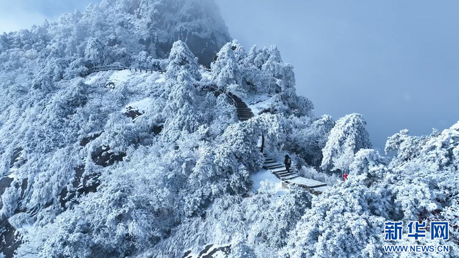 1月28日,安徽九华山风景区雪后放晴,天空湛蓝如洗,峰峦银装素裹。玉树琼花的雾凇、原驰蜡象的群峰、白雪皑皑的山林,处处散发着一种让人沉于恬静的美妙,吸引了众多游客和摄影爱好者前来踏雪赏景、摄影。
