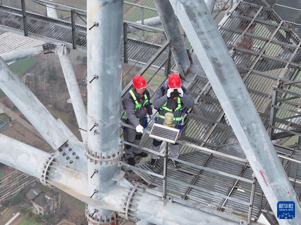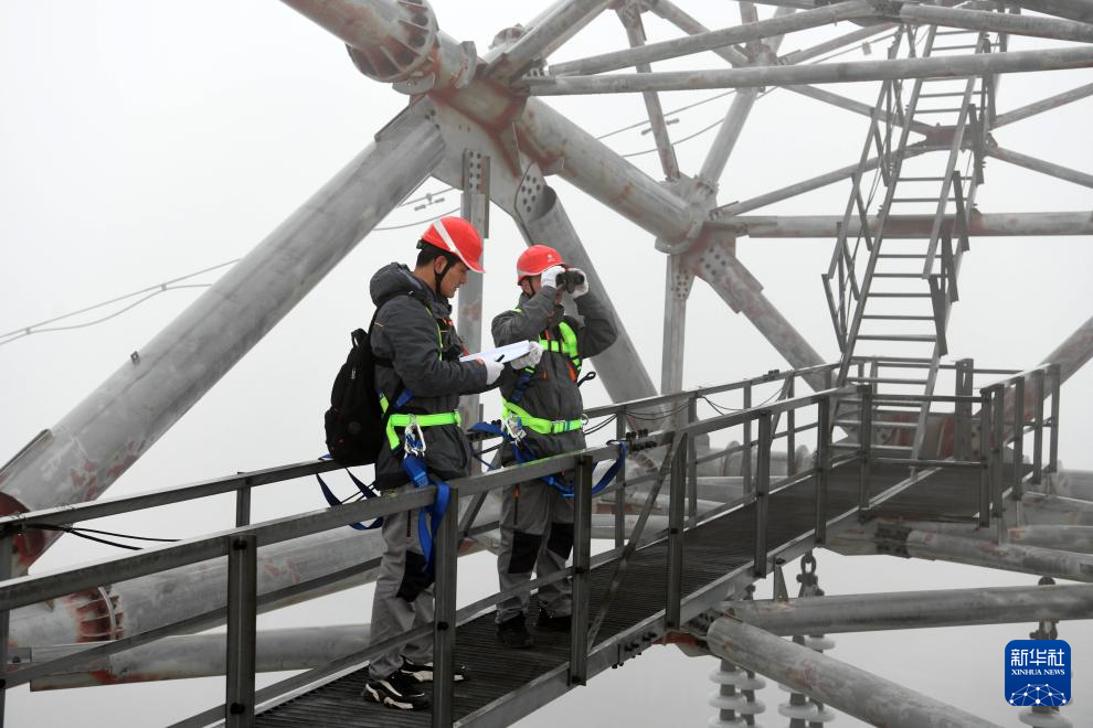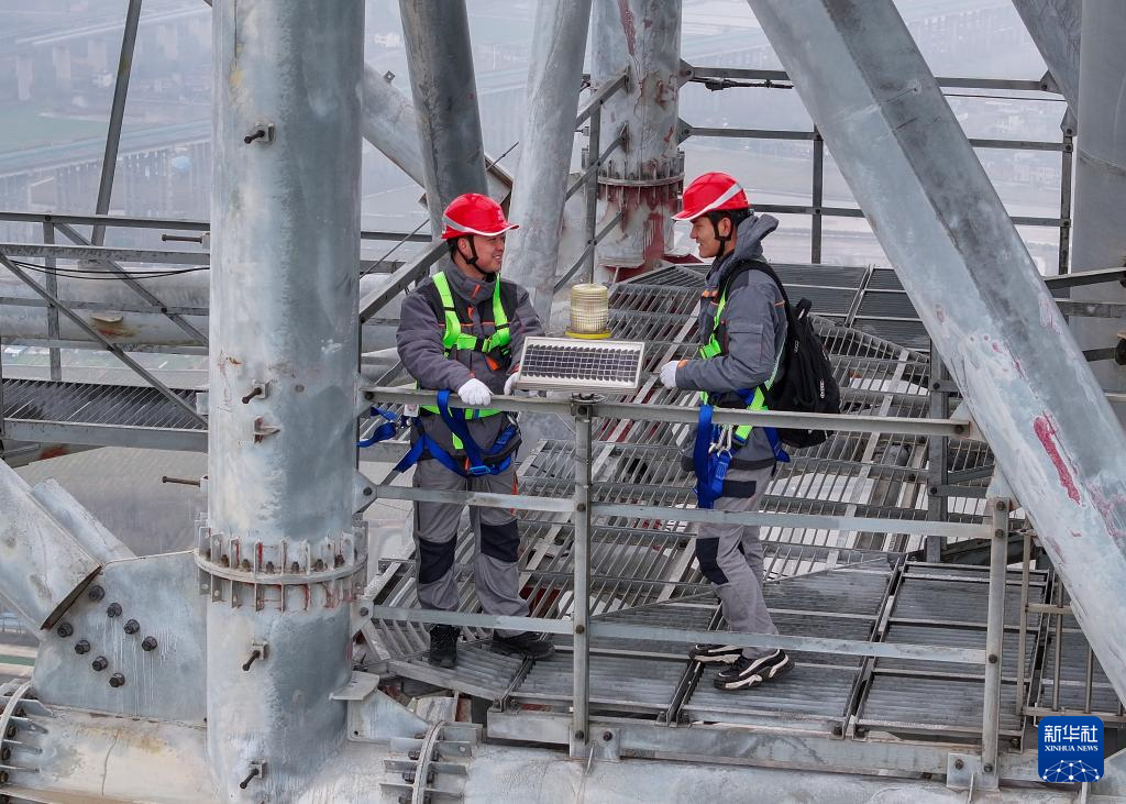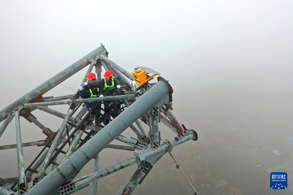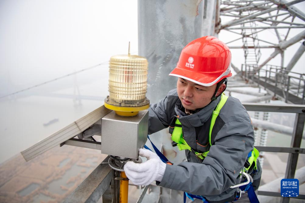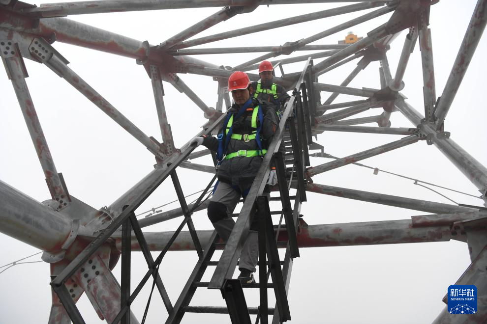 近日,安徽迎来低温雨雪天气,安徽送变电工程有限公司“95后”员工张洲和张磊磊冒着风雨驻守在芜湖市的长江边,守护277.5米高的1000千伏淮芜线长江大跨越北站电塔。攀爬、瞭望、巡线、除险……他们在“云端”值守,确保春节期间这条安徽淮南煤电输送至华东地区重要能源通道的安全稳定运行。