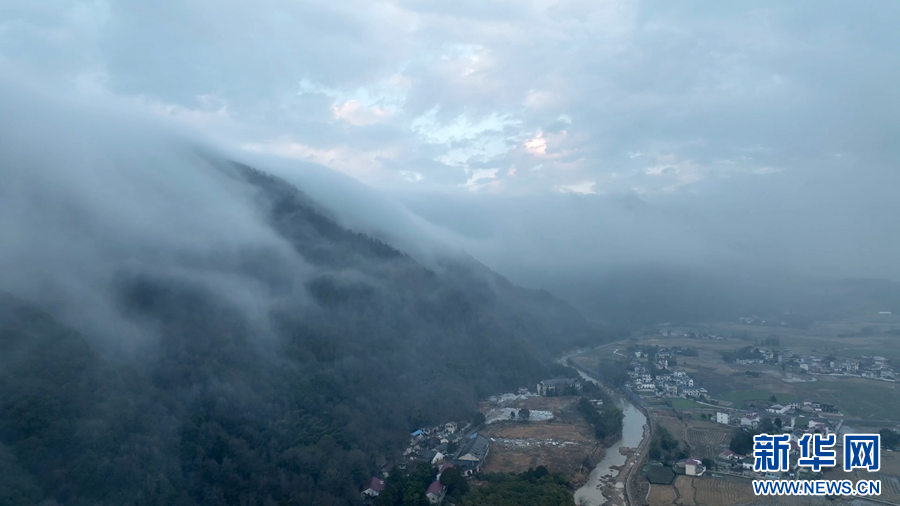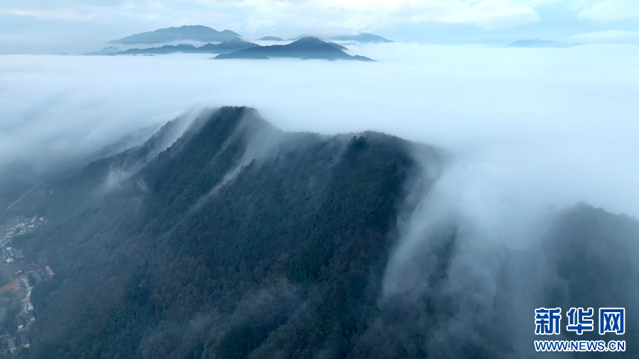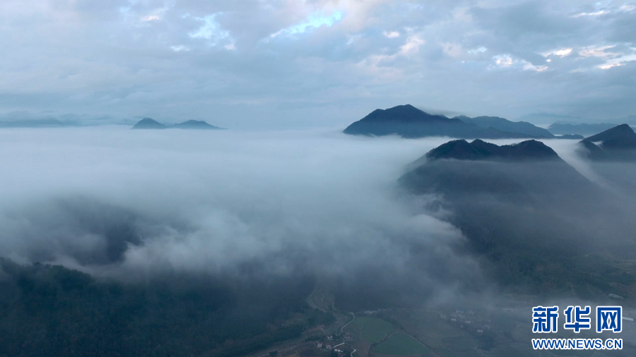 深冬时节,位于皖南山区的安徽省旌德县玉屏村出现云海景观。行云飞瀑顺着山脊缓缓流淌,将村庄和田园笼罩,如梦似幻。