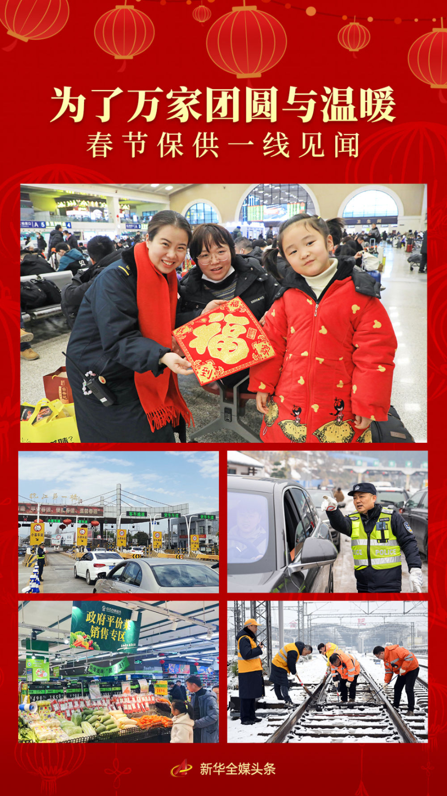 春节是中华民族最为隆重的节日。为了万家的团圆与温暖,各地各部门积极行动,许多干部、职工奋战在保供第一线:有的千方百计让群众回家路更便捷,有的“24小时待命”确保用水、用气、用电有保障,有的全力保障生活必需品供应充足……
