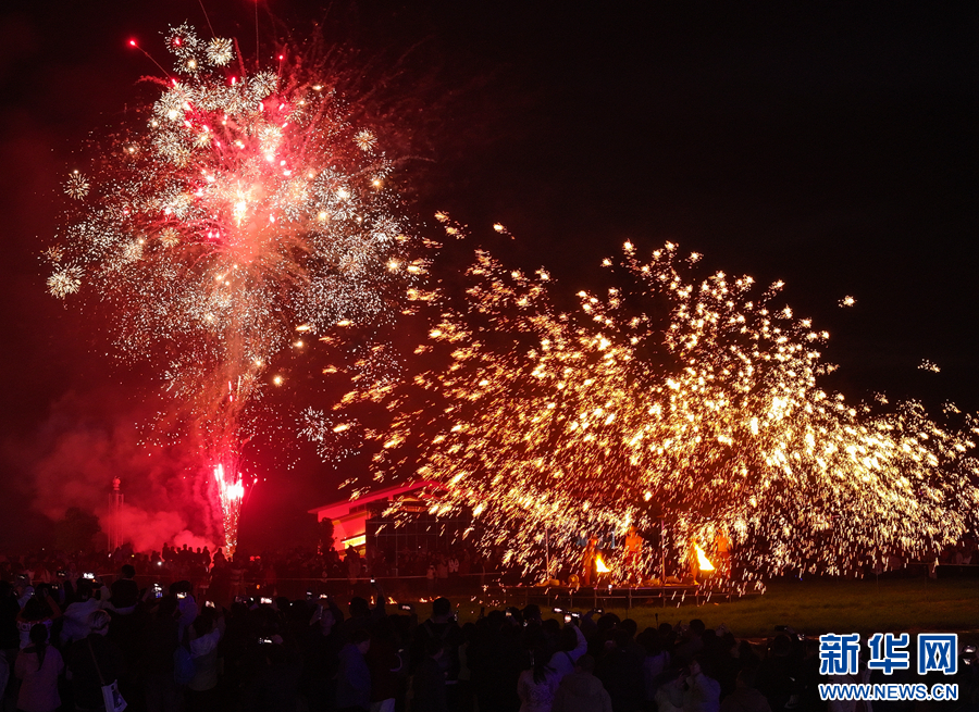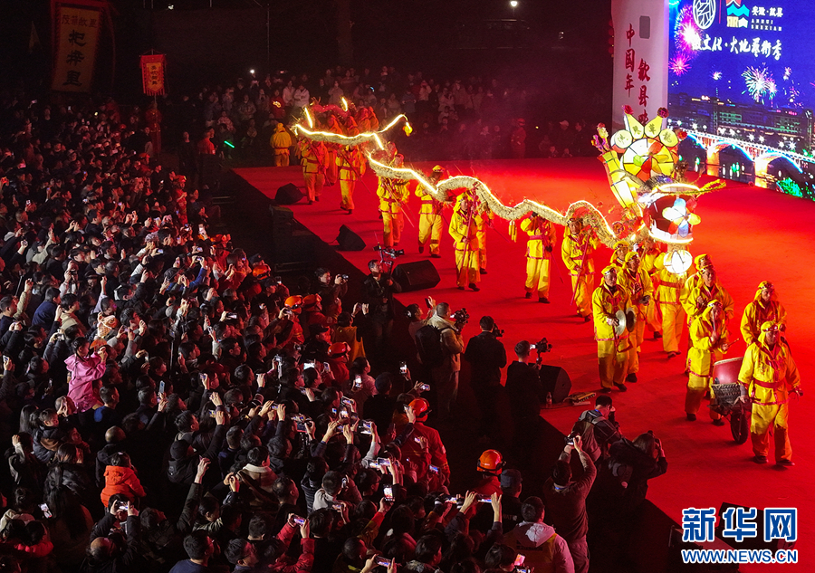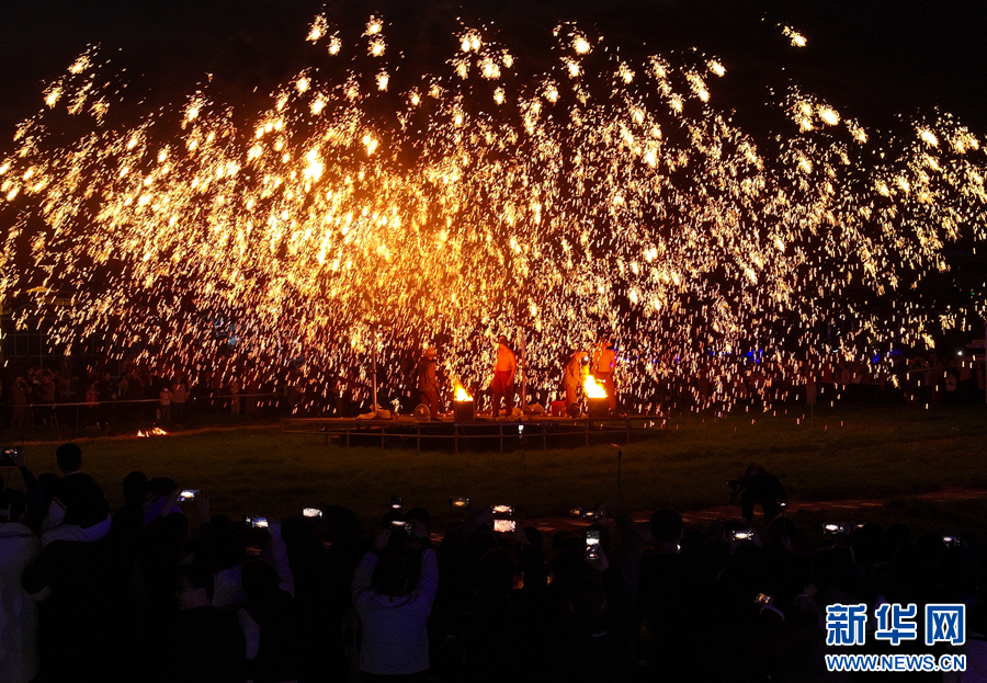 当日晚,安徽省黄山市歙县四月乡村举行“一夜鱼龙舞,今夜星光璀璨”主题民俗展演活动,舞龙、舞鱼灯、打铁花等各类民俗精彩纷呈,烟花浪漫璀璨,为游客献上一场缤纷多彩的视觉盛宴。 新华网发(施亚磊 摄)