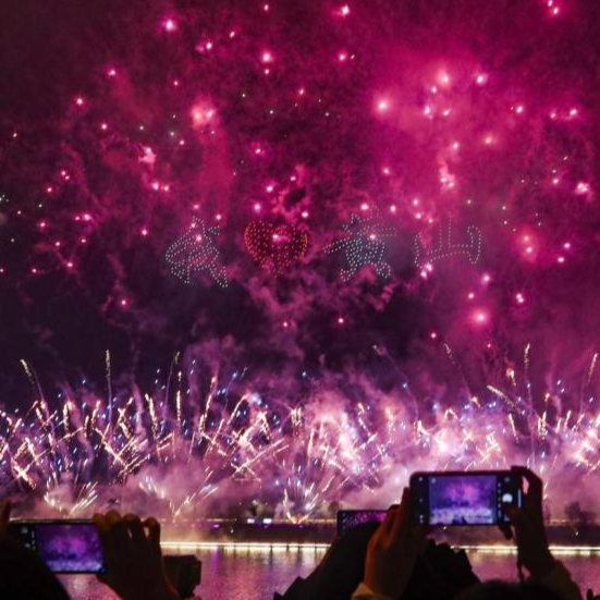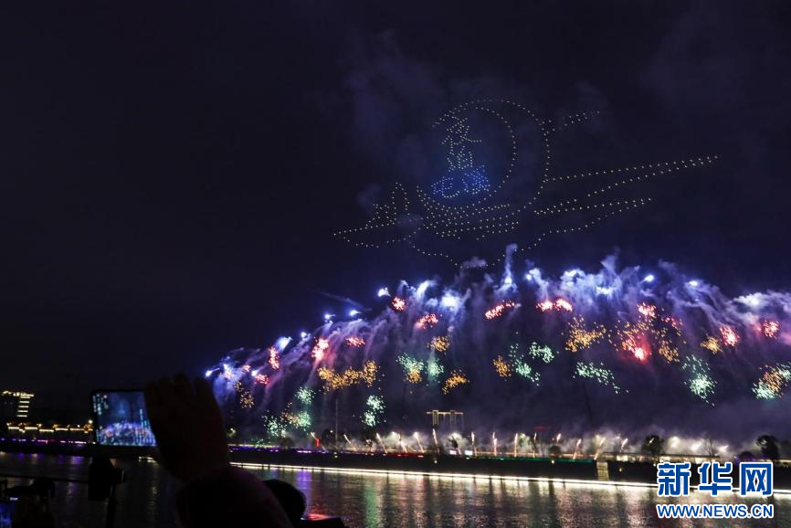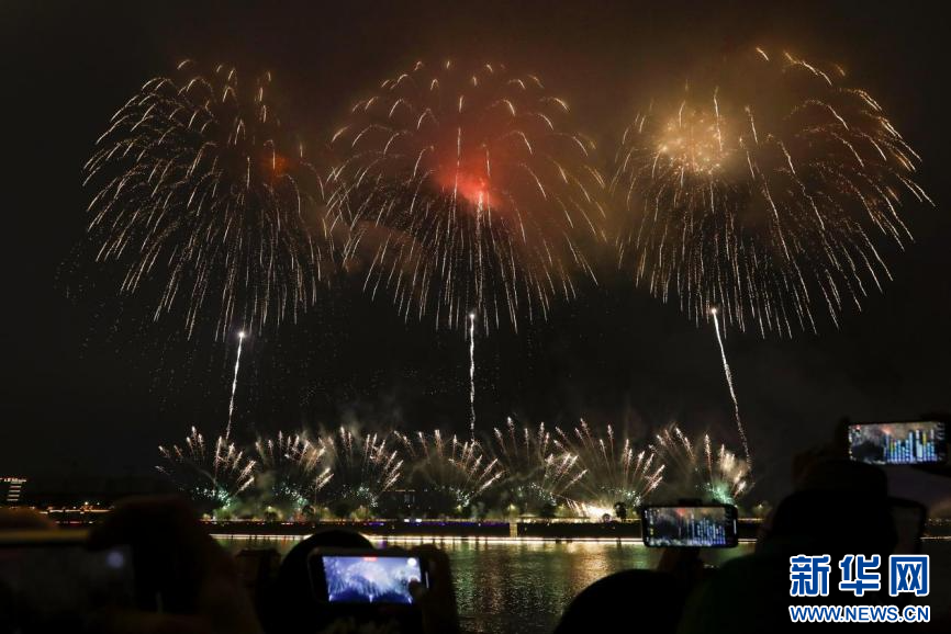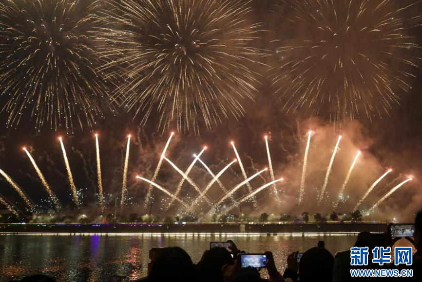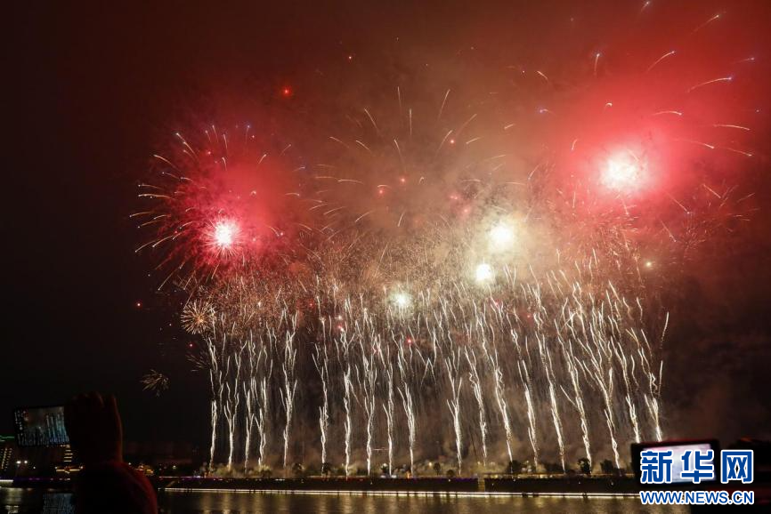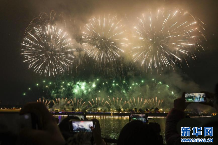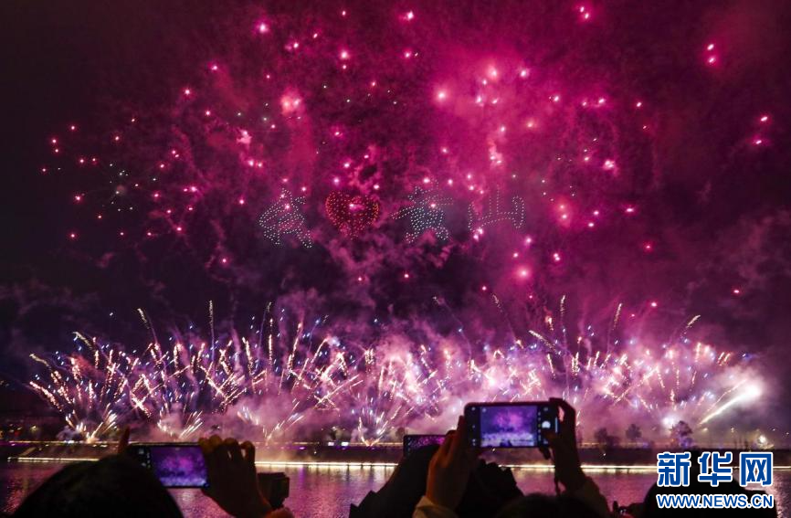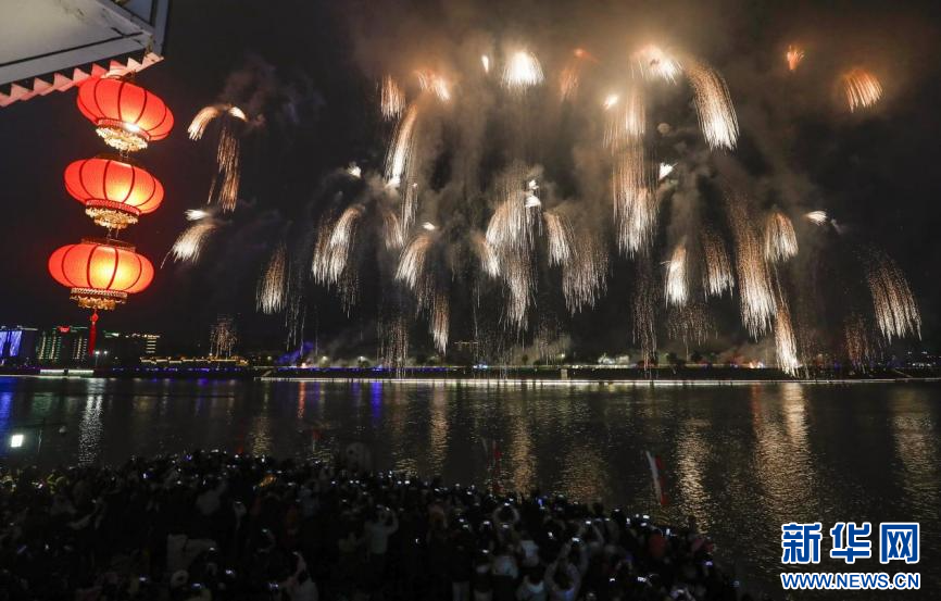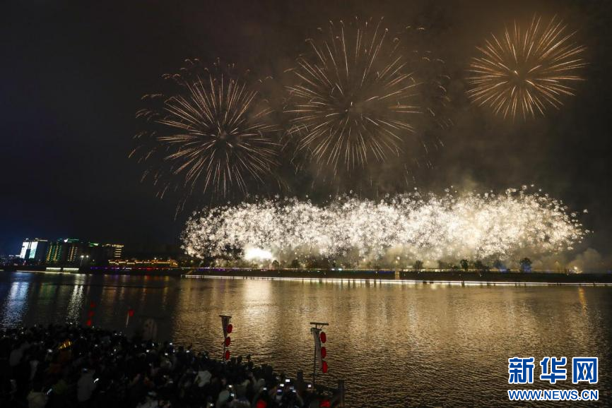 当日是甲辰龙年元宵节,以“焰遇新安江”为主题的2024年元宵焰火晚会在安徽省黄山市屯溪河街上演。天空为幕,花火作笔,造型多变的缤纷焰火在新安江畔璀璨绽放,为市民和游客带来一场精彩的视觉盛宴。新华网发(施亚磊 摄)