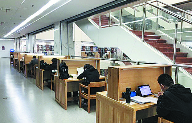 每晚10时30分,馆内仍有不少学生在夜读。“图书馆简直就是我的第二个宿舍”,该校学生洪佳乐感慨,早“7”晚“11”,周四不闭馆的开放时间调整很符合考研人的作息。