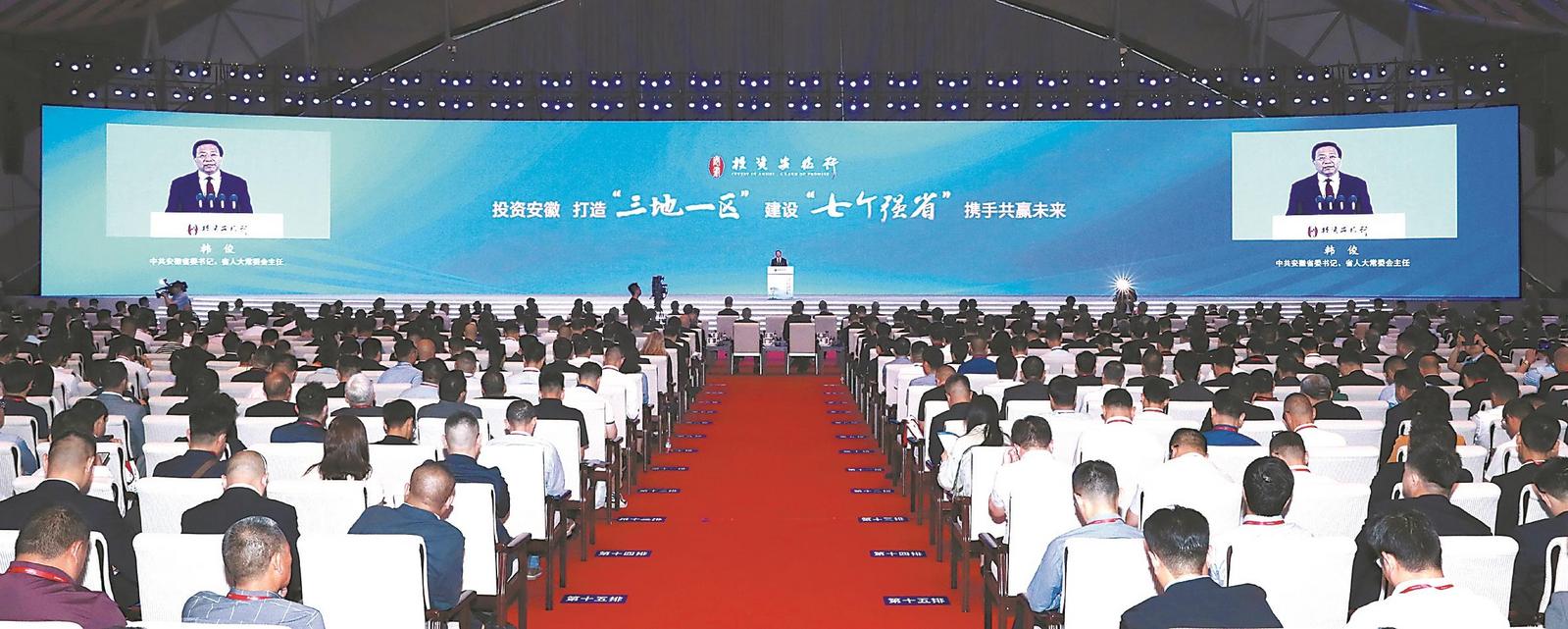 韩俊在致辞中指出,去年5月,安徽省全面启动“投资安徽行”系列活动以来,我们坚持常态化请进来、走出去,足迹遍布全国、走向全球。在这些活动中,我们共同见证了彼此双向奔赴的热情,见证了投资安徽的耕耘和收获。一家家知名企业落户安徽、一个个优质项目落地建设,传递的是国内外投资者对安徽的信任、对机遇的把握;一组组经济运行的亮眼数据、一个个“双招双引”的累累硕果,显示的是安徽高质量发展的大好态势、新质生产力不断壮大的强大动能。在“投资安徽行”2024年系列活动全面启动之际,我们更有信心更有底气地承诺:给安徽以信任,还您以惊喜。我们会以行动兑现承诺,把信任转化为责任,以顶格的支持、精细的服务、有力的保障,成全各位企业家在皖创新创业创造的梦想,让大家在安徽有“第二个家”的感觉。