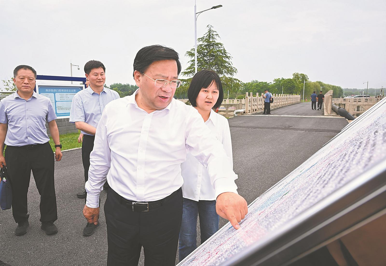 十五里河河口闸站枢纽工程是环巢湖综合治理十五里河小流域治理的重要控制工程。韩俊实地察看河道水位和防洪闸、泵站等设施,详细了解工程运行管理、防洪排涝等情况,强调要建立科学调度机制,统筹考虑流域上下游水库库容、蓄洪区等调蓄能力。要坚持治标治本相结合,谋划并实施好巢湖流域重大防洪治理工程建设,进一步提高流域防洪抗灾能力。