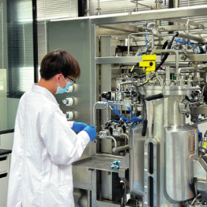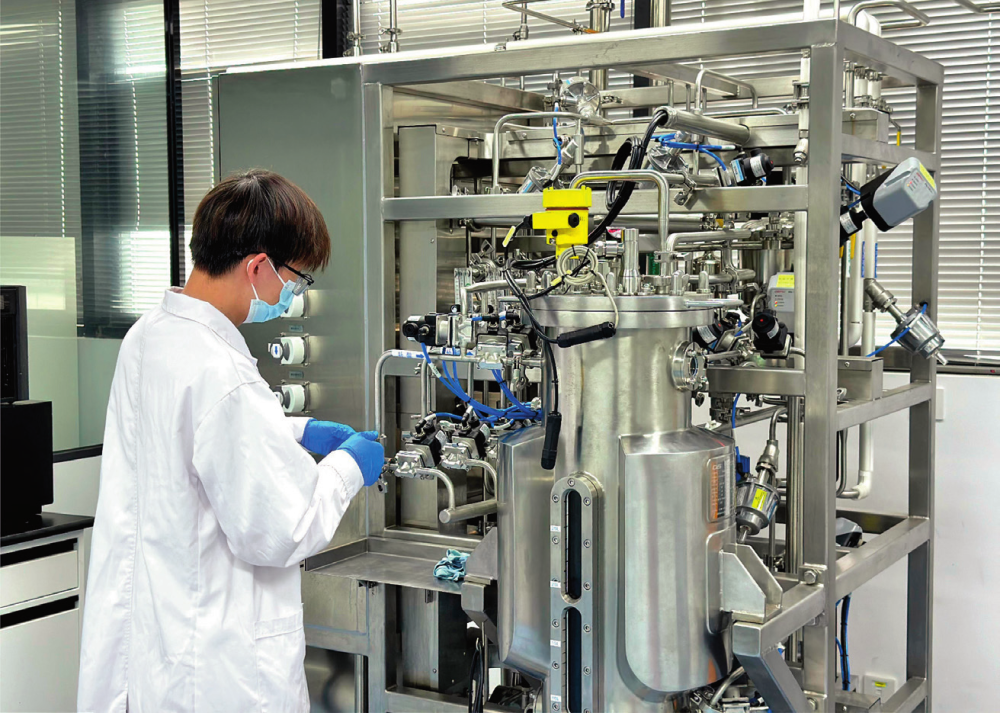 安徽合城生物医药科技有限公司中试生产部实验员调试发酵罐设备为发酵做准备(2024年7月15日摄) 周振元摄