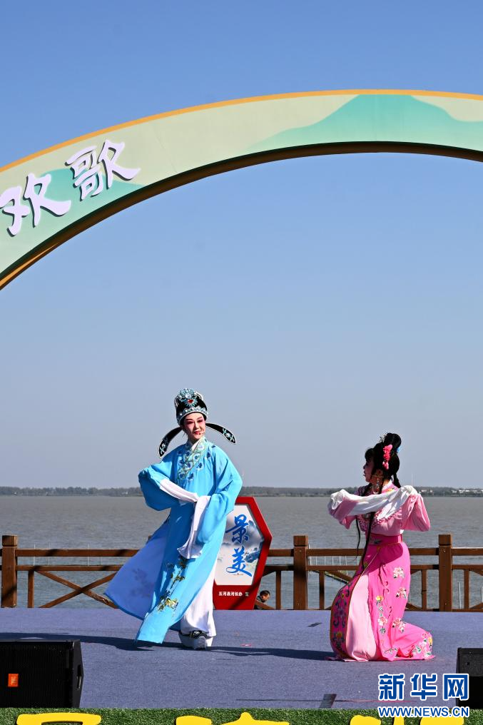 9月28日,演员在五河县2024年中国农民丰收节暨第六届螃蟹节上表演节目(无人机照片)。
