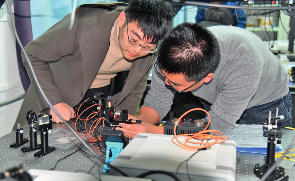 中科大少年班学院学生正在进行光纤传感显微测量实验(2024 年3月19日摄) 中科大物理实验教学中心供图