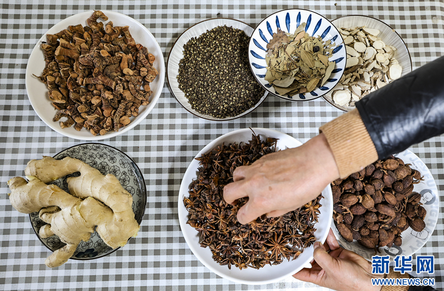 安徽省马鞍山市博望区居民准备制作腊味的配料。新华网发(王文生 摄)