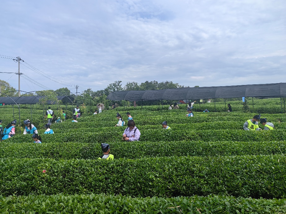 游客在梅溪塘采摘茶叶,感受茶文化魅力。新华网发(李航 摄)