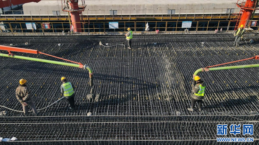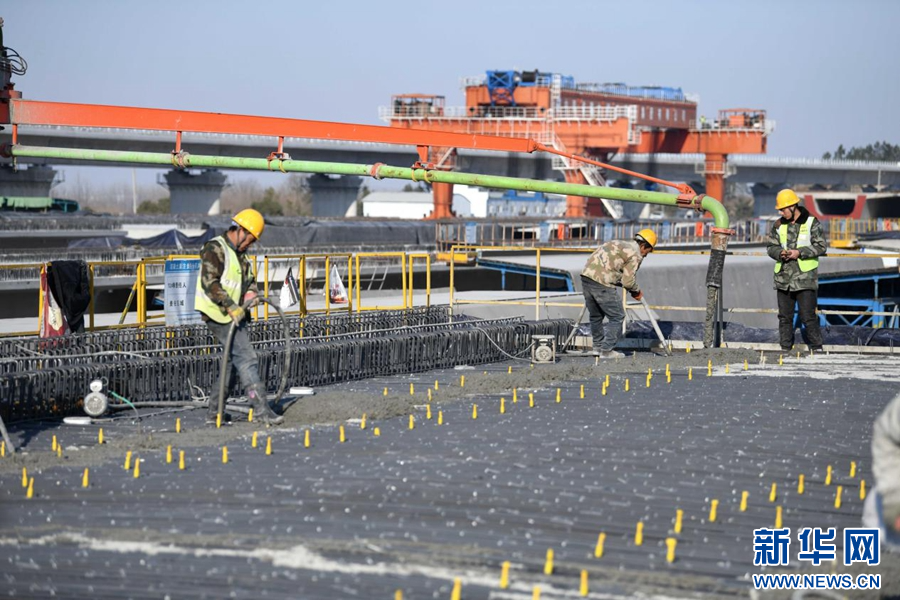 1月10日,施工人员在中国铁建大桥局肥东制梁场生产箱梁。新华社记者刘军喜摄