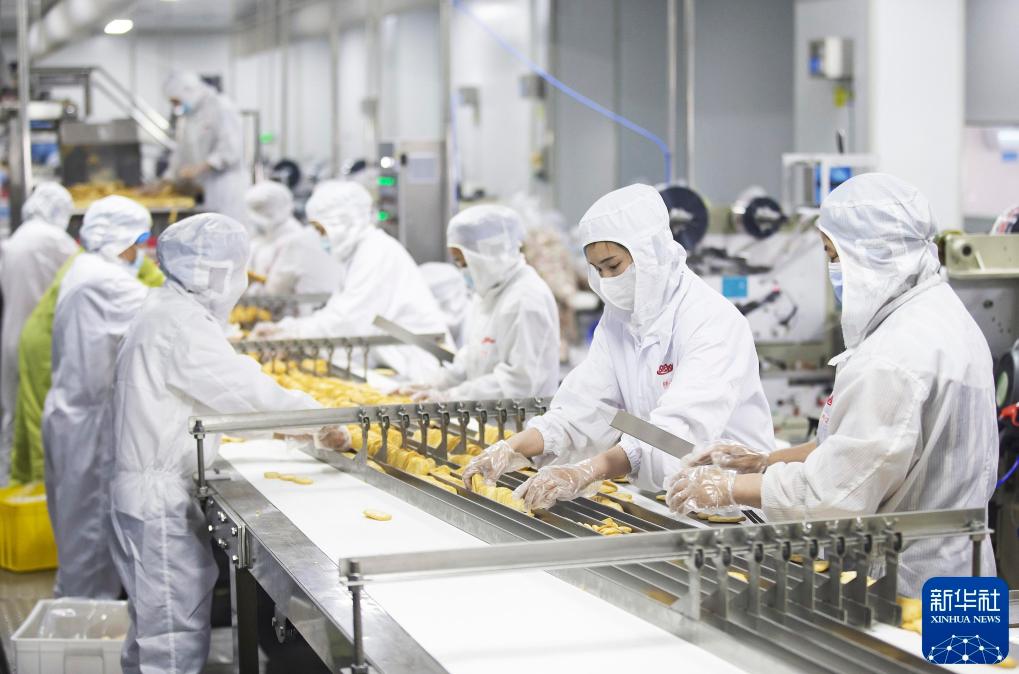 2024年8月12日,工人在位于小岗村的安徽省小岗盼盼食品有限公司生产线上作业。新华社发