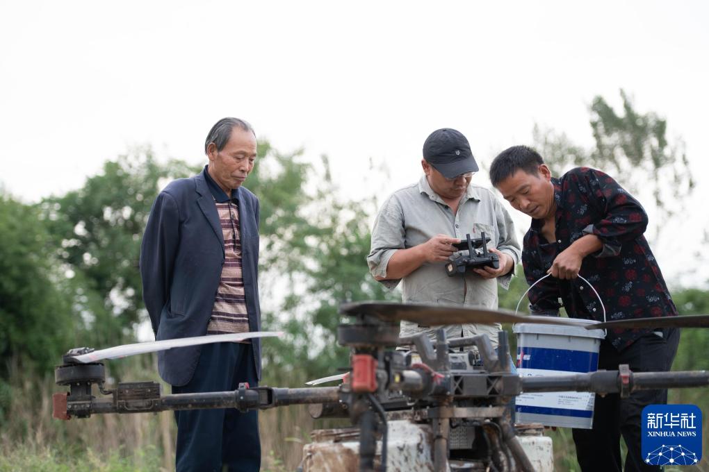 2024年9月26日,村民在小岗村使用植保无人机。新华社记者 张端 摄