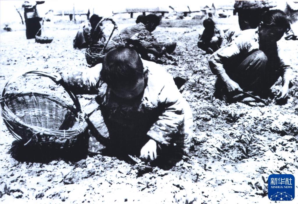 小岗村农家孩子在田里拾荒(资料照片)。