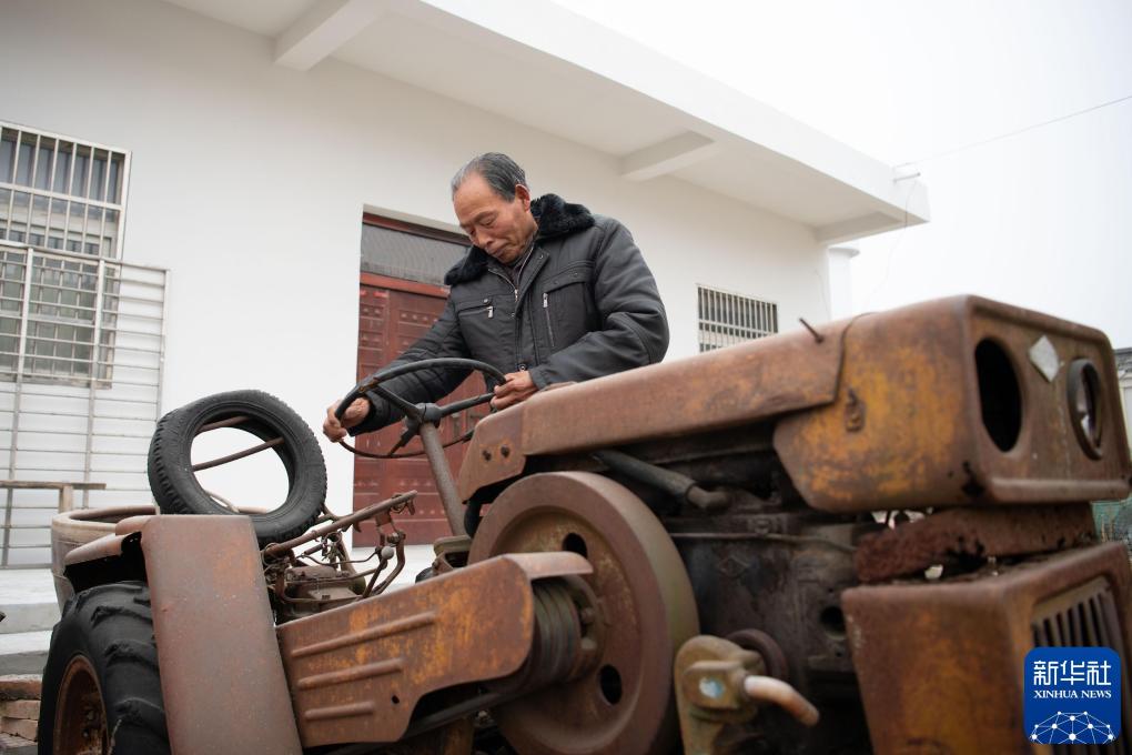 2025年1月23日,严宏昌介绍家中购置的第一台拖拉机。新华社记者 张端 摄