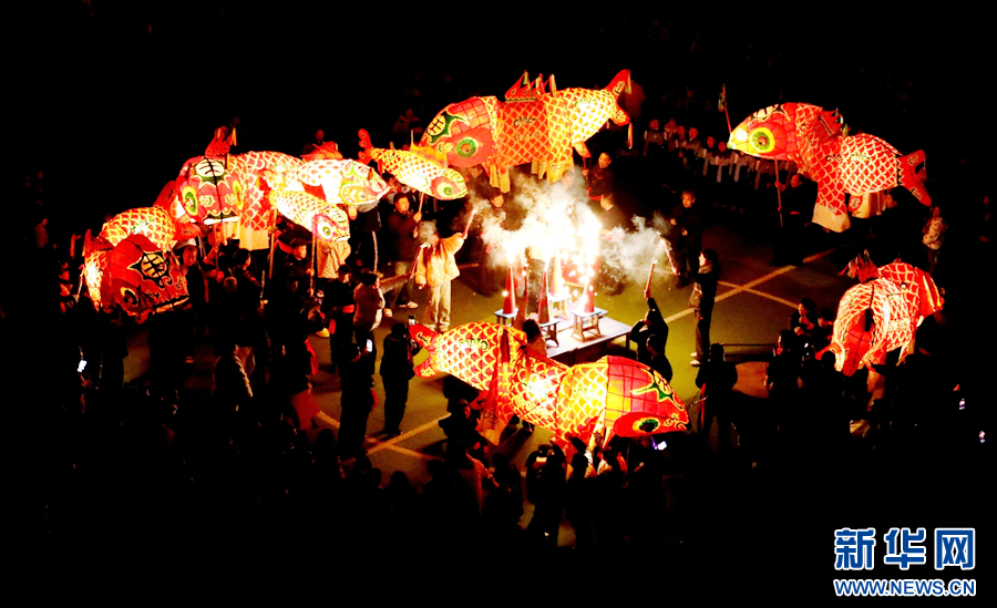 近日,在安徽省歙县,当地学校举行非遗进校园活动,民间艺人和学校师生舞动鱼灯,传承鱼灯文化。新华网发(吴建平 摄)
