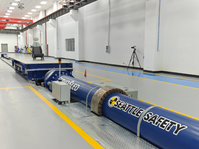 10月13日,招商车研模拟碰撞试验室的加速滑台,能够模拟各种碰撞情况,检测约束系统对乘员的保护能力。