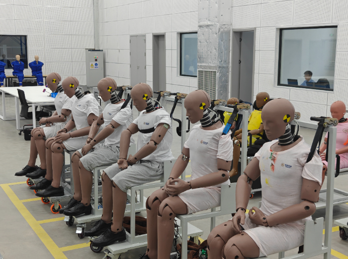 据介绍,这里的假人内置上百个传感器,能够精准模拟人体在碰撞中的生物力学响应,如肋骨承受力和内脏位移等。在碰撞试验中,假人标定的准确性直接影响到碰撞试验结果的可靠性和可重复性。只有经过严格标定的假人才能提供准确的数据,从而帮助工程师们更好地理解车辆在碰撞中的表现,并优化安全设计。