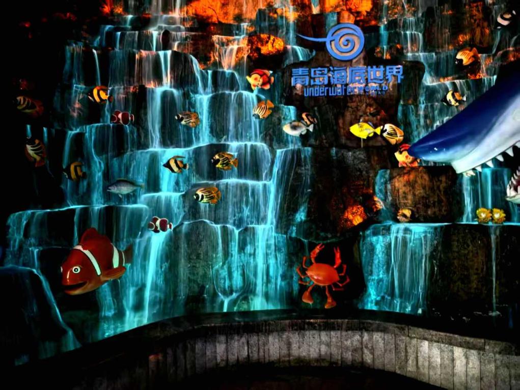 在青岛海底世界,由合肥神笔生物科技有限公司研发的发光菌应用于大型动态水景。新华社发(受访企业供图)