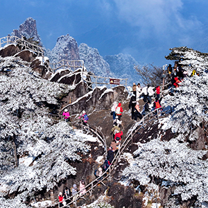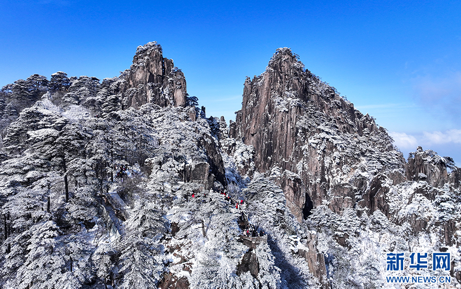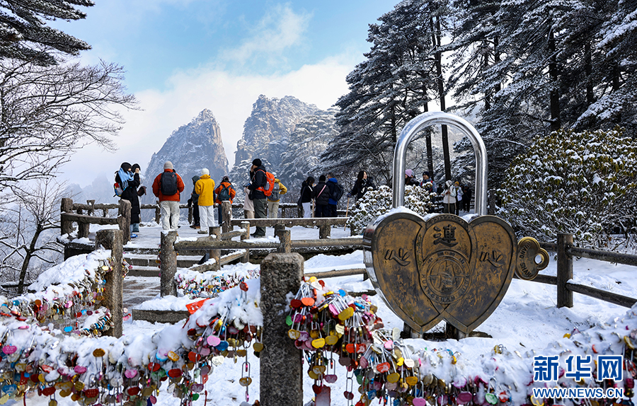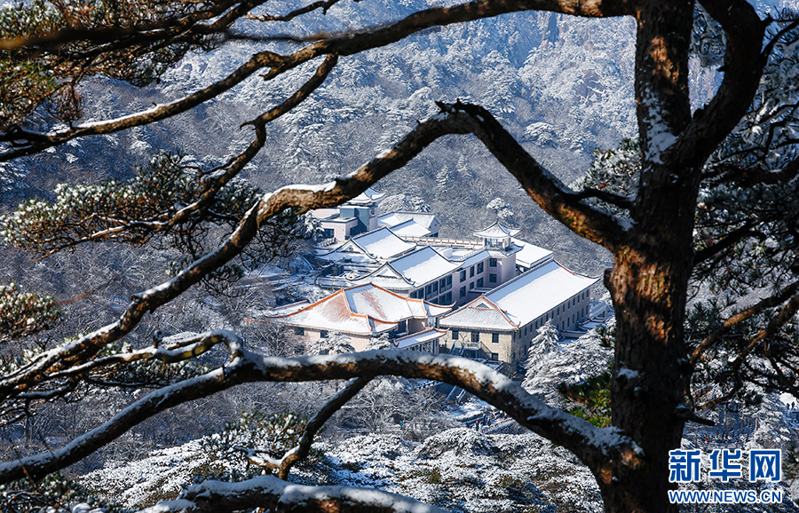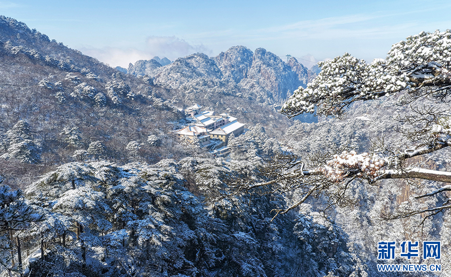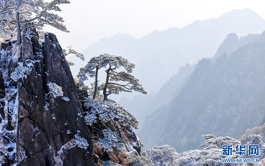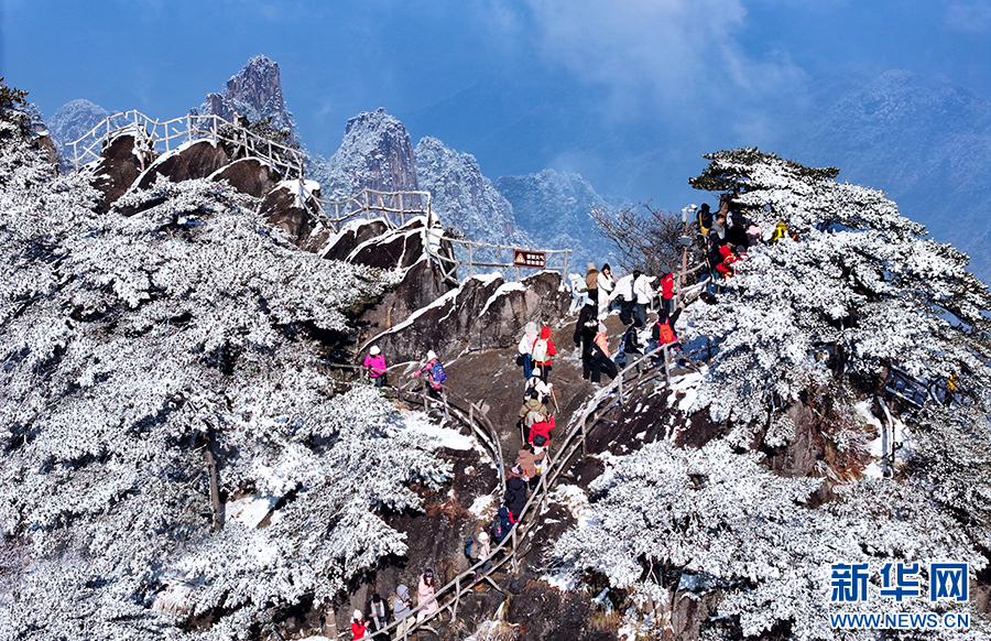 当日,雪后初霁的安徽省黄山风景区一派银装素裹,皑皑白雪覆盖着峰峦,玉树琼枝晶莹剔透,云海缥缈,宛若仙境,令人叹为观止。