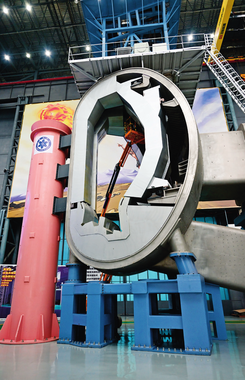 聚变堆主机关键系统综合研究设施“夸父”(CRAFT)八分之一真空室,偏滤器安装在真空室内部(2025 年 10 月 13 日摄) 周牧摄 / 本刊