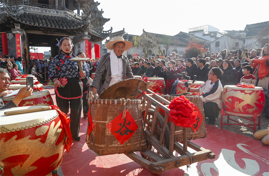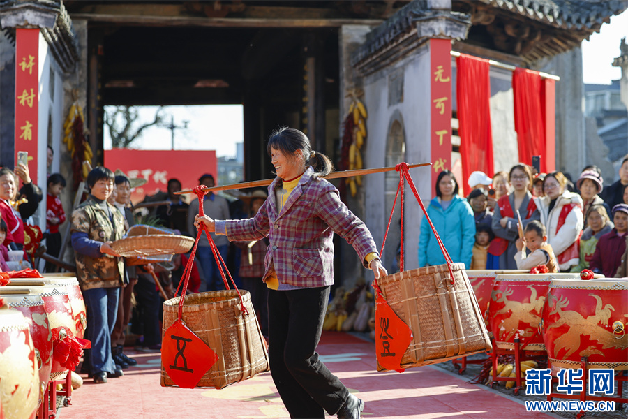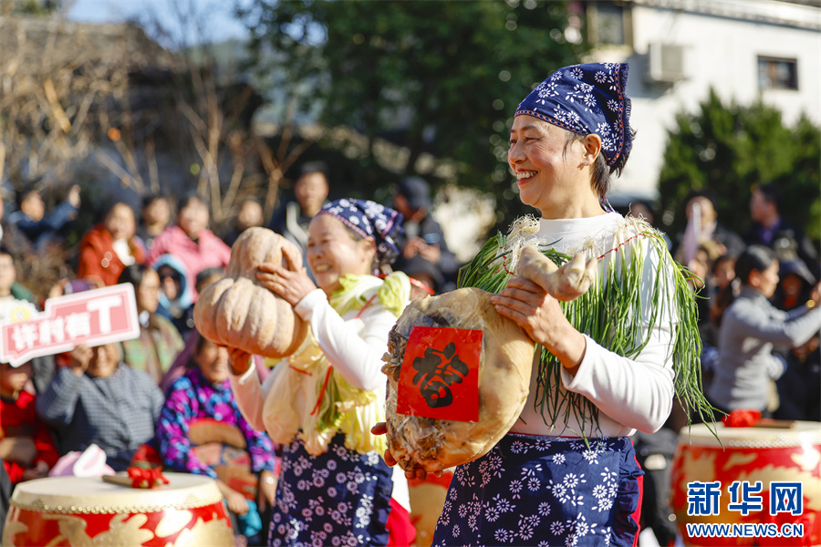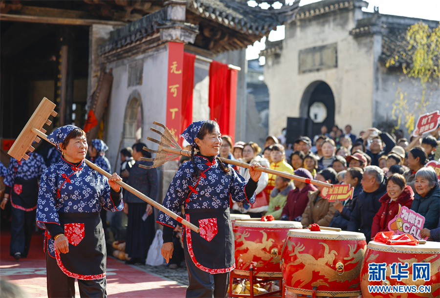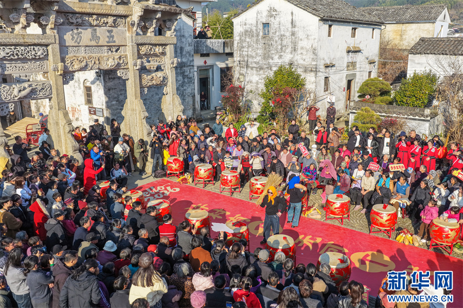 当日,一场充满乡土气息的“村T”秀在安徽省黄山市歙县许村镇许村火热上演。来自全县各乡镇12支队伍近200名村民成为T台主角,他们自编自导自演,通过走秀的形式展示各类农具、农产品和文旅产品,生动演绎日常劳作与乡村生活场景,在喜庆的氛围中共同迎接新年的到来。新华网发(施亚磊 摄)