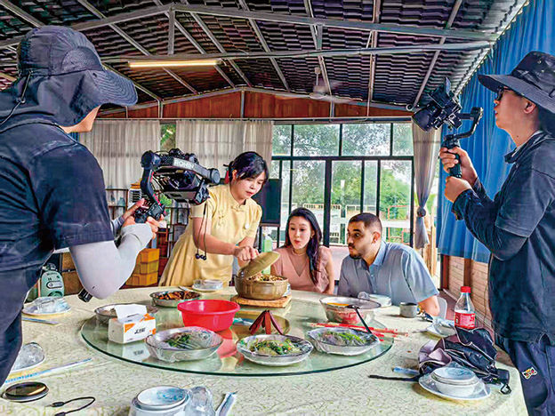 在广东省广州市增城区龙新村能记家庭农场,乡村CEO莫丽贤迎接到访的外国博主。