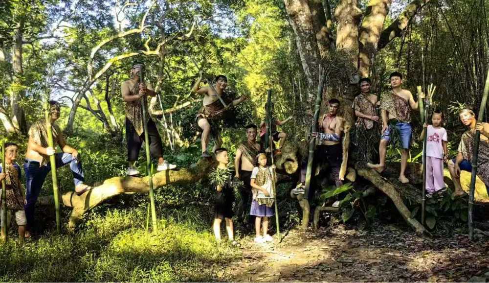 柯世明带着几个家庭进行野人部落研学活动
