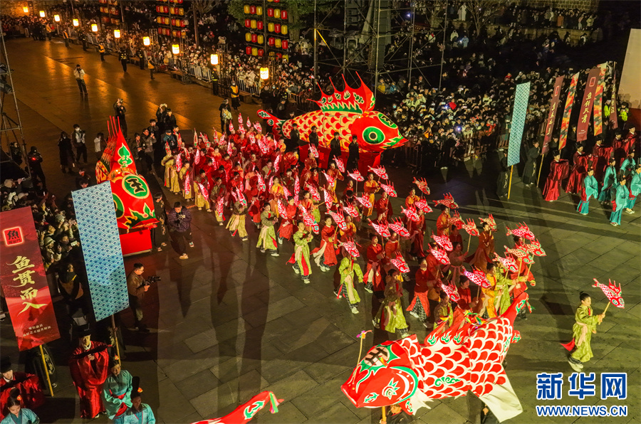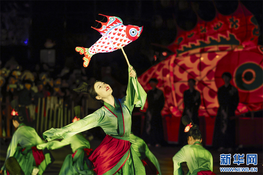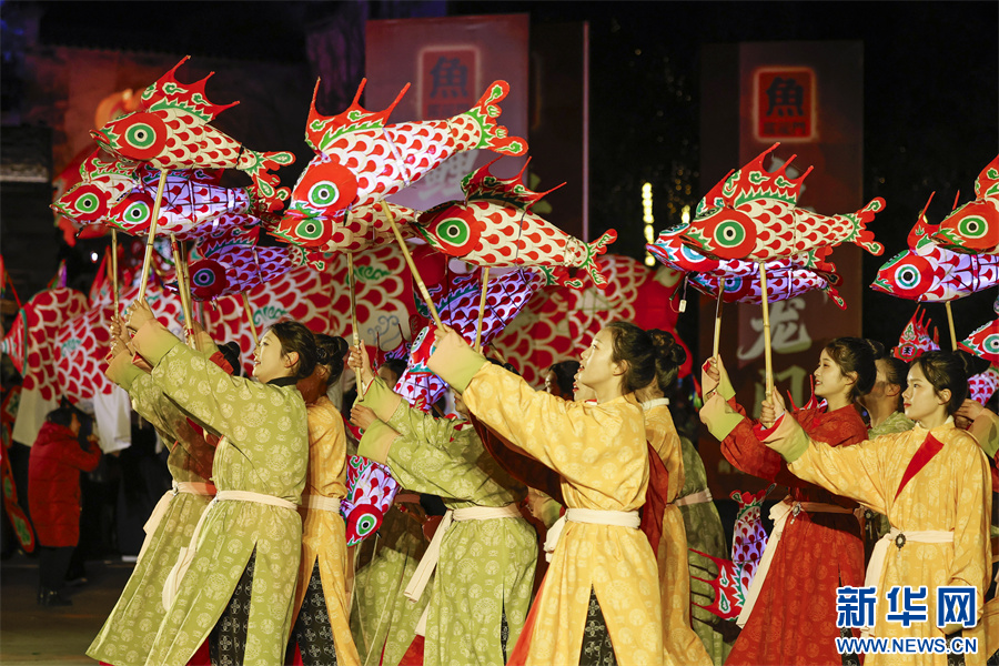 1月1日,演员在安徽省黄山市歙县徽州古城表演鱼灯舞蹈。