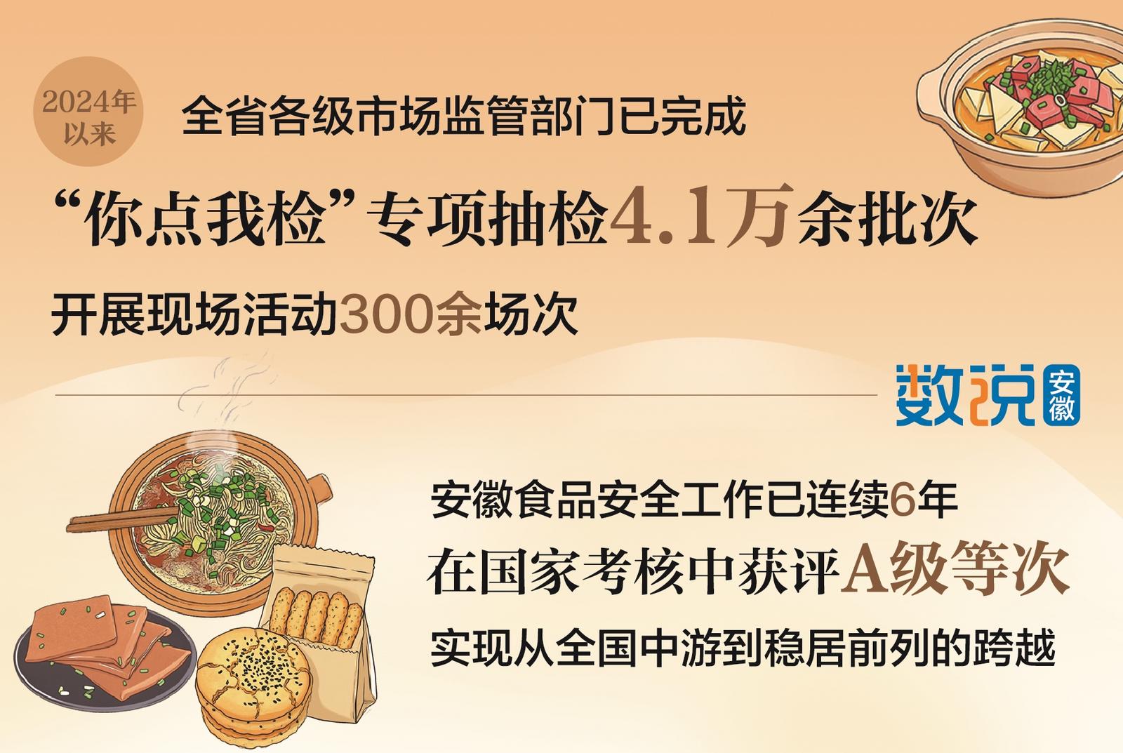 更重要的是,“你点我检”搭建起社会共治的开放平台。人大代表、政协委员、媒体和消费者代表常被邀请参与抽样、见证检测,打破监管“神秘感”,让监督权落到实处。据统计,2024年以来,全省各级市场监管部门已完成“你点我检”专项抽检4.1万余批次,开展现场活动300余场次。安徽食品安全工作已连续6年在国家考核中获评A级等次,实现从全国中游到稳居前列的跨越。