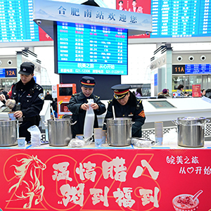 腊八节即将到来之际,一场“温情腊八 粥到福到”活动在安徽省合肥南站候车大厅内举办,车站工作人员将一碗碗热气腾腾的腊八粥送到旅客手中,让旅客在旅途中感受浓浓温情。