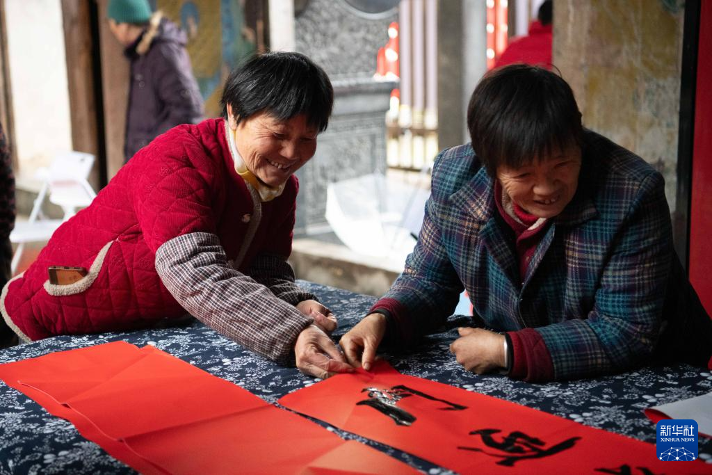 2月6日,在安徽省黄山市黟县南屏村,村民参加写春联活动。