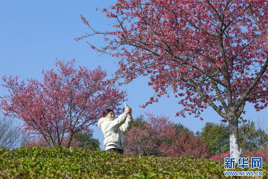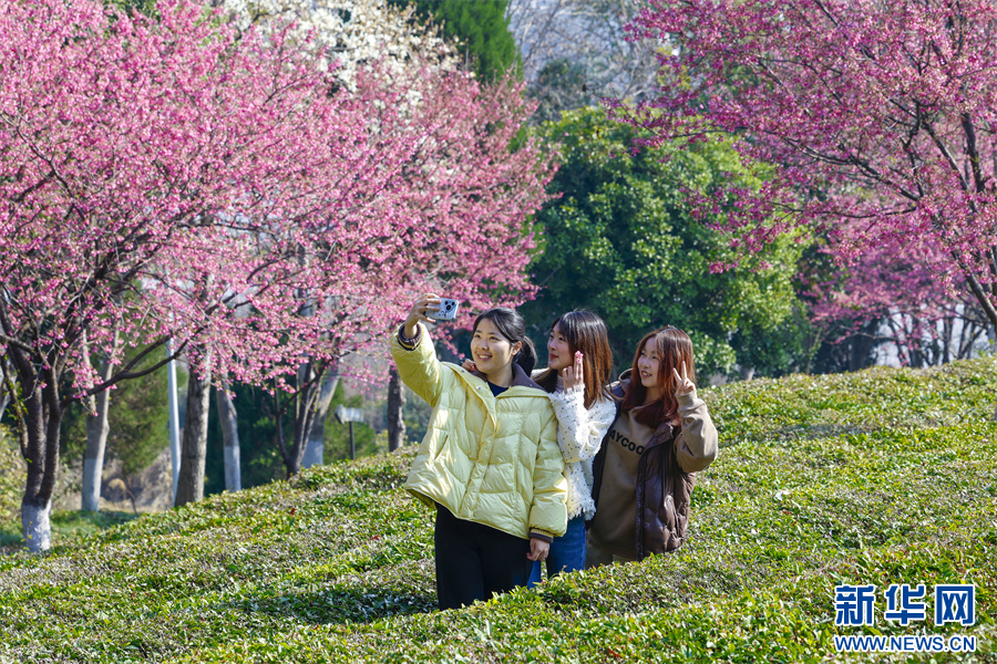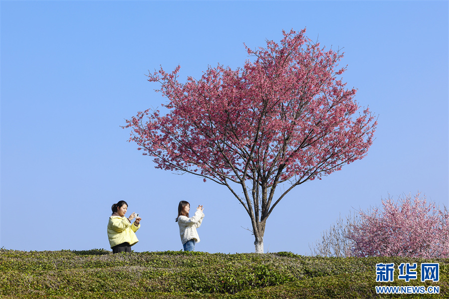 春日时节,安徽省黄山市徽州区谢裕大茶博园新茶吐绿,一树树樱花烂漫绽放,点缀在层层叠叠的茶园间,红绿相映,美不胜收。新华网发(施亚磊 摄)