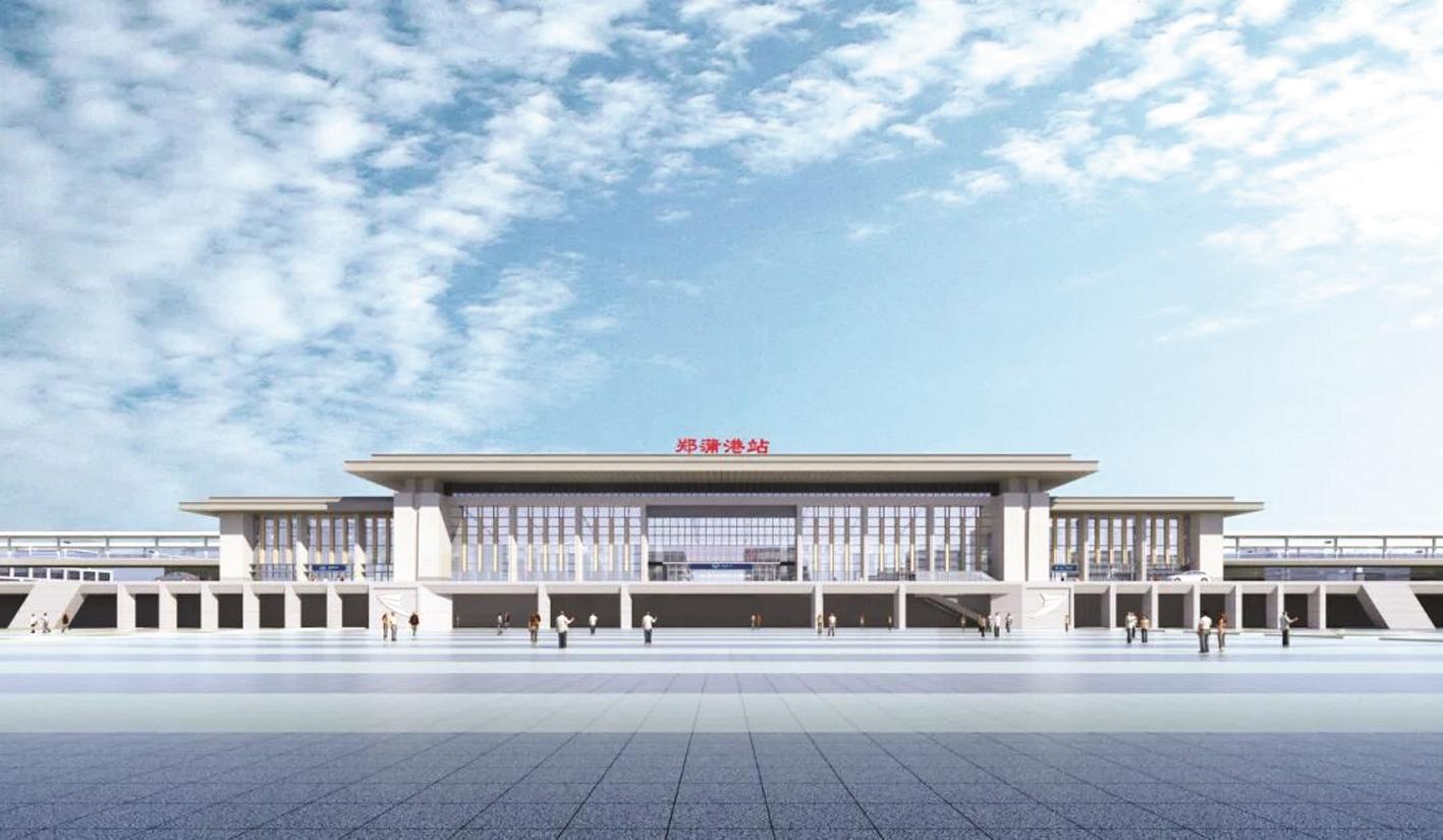 郑蒲港站位于马鞍山市郑蒲港新区境内,建筑面积9960.5平方米,建筑高度21.3米,站房为线侧下式站型,主体为钢筋混凝土框架结构,地下一层,地上一层,屋盖为空间钢网架结构,客流采用上进下出的流线形式,站场规模为2台4线。该站站房以“港城新区城市门户开放包容再立华章”为设计理念,三段式的建筑布局让整个建筑中部主体更加突出。